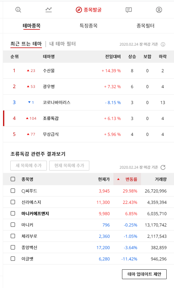 실시간으로 뜨는 테마와 그에 따른 종목들은 확인할 수 있어서 정말 좋더라구요.