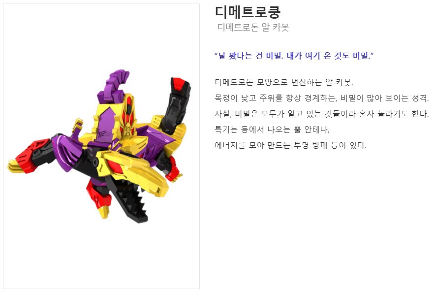 다른 차원에서 온 카봇의 친구인 디스크캐논과 런처가 합체한 비룡 로봇.