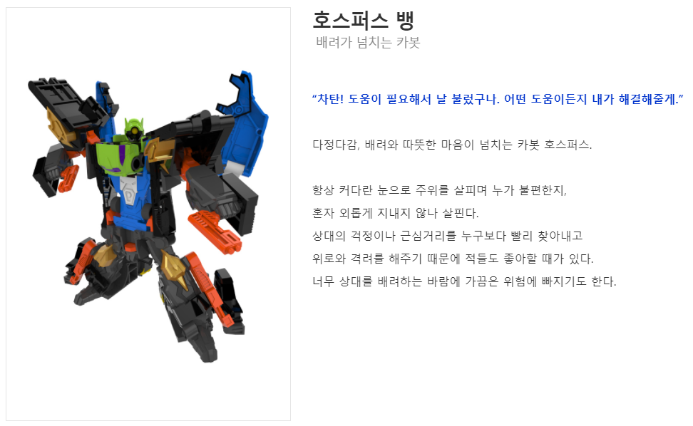 다정다감, 배려와 따뜻한 마음이 넘치는 카봇 호스퍼스.